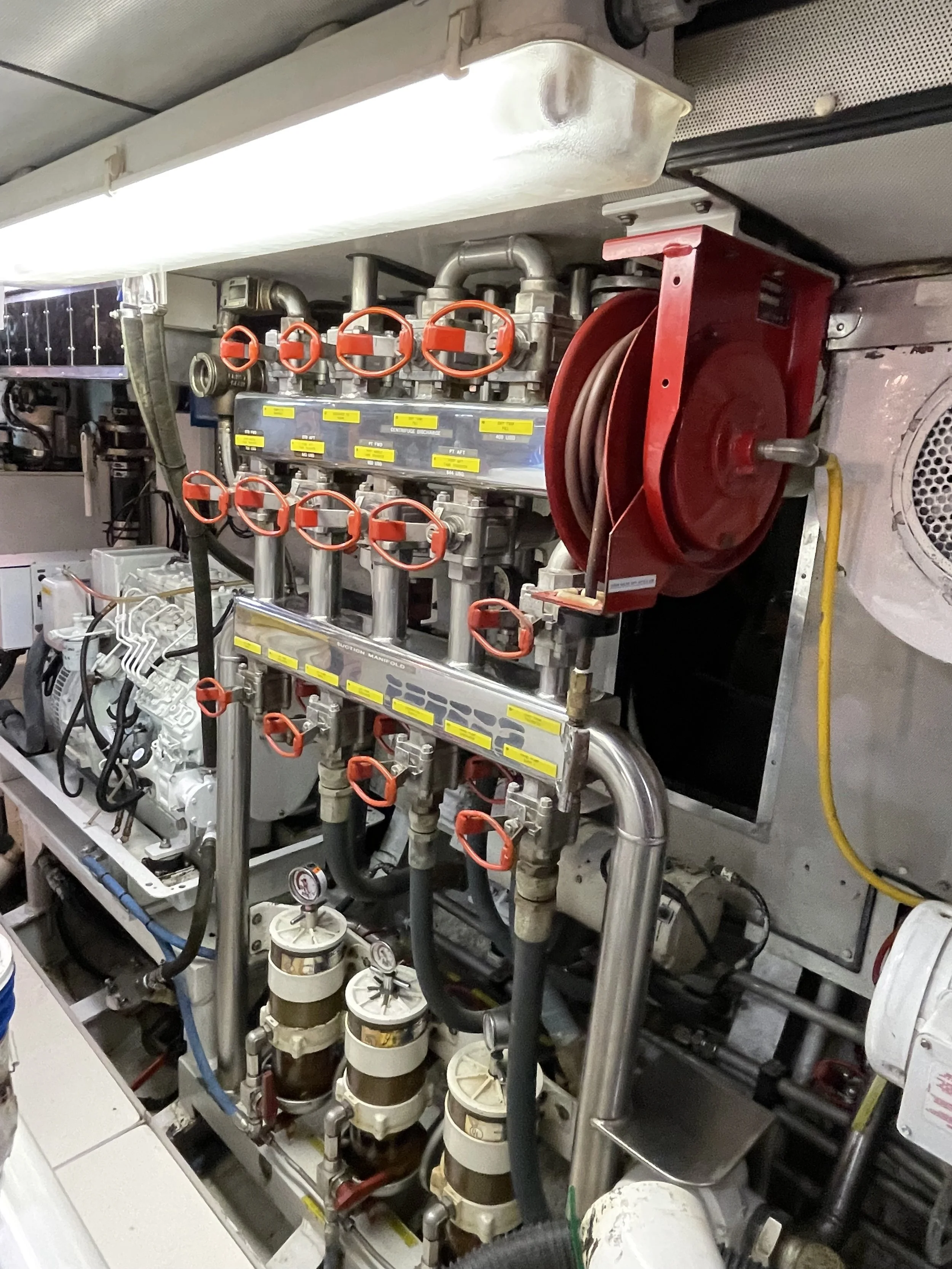 water makers, generators, bilge system, hydraulic system, electrical system, heating and cooling system.